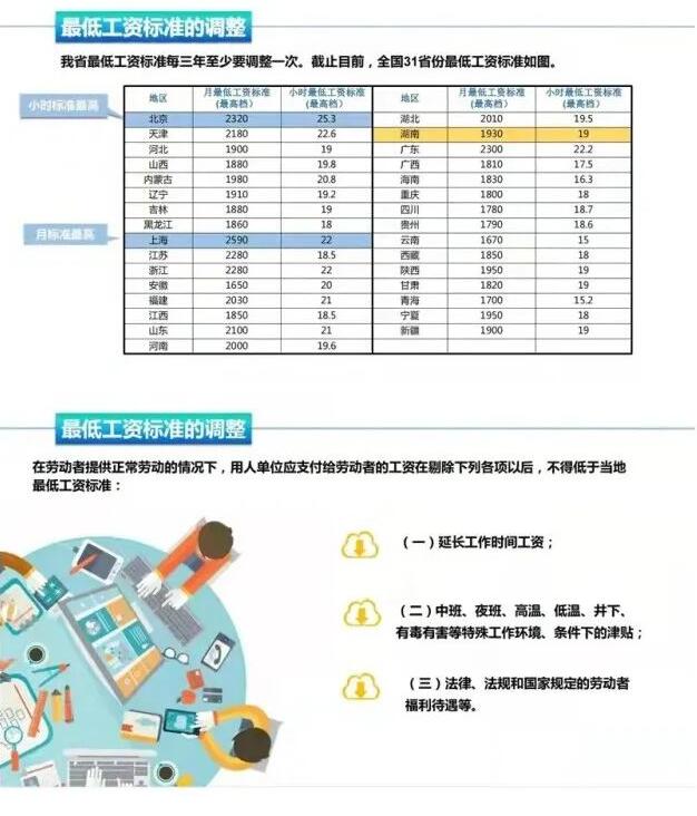調(diào)整后我省月最低工資標準(適用于全日制勞動者)分三個檔,分別為1930元/月、1740元/月、1550元/月;小時最低工資標準(適用于非全日制勞動者)也相應設(shè)三個檔,分別為19元、17元、15元。